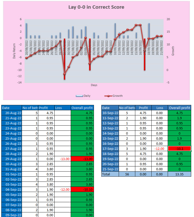 Correct Score 0-0 Strategy54 Days 13.15 Profit.